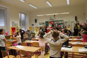 Dne 6.12.2017 k nám zavítali Mikuláš, andělé a čerti. Žáci 1. stupně jim předvedli své písničky a básničky a dostali sladkou odměnu